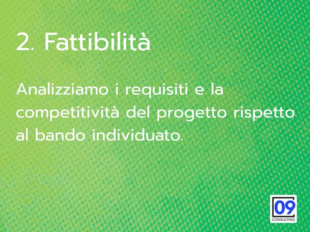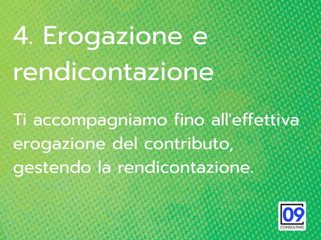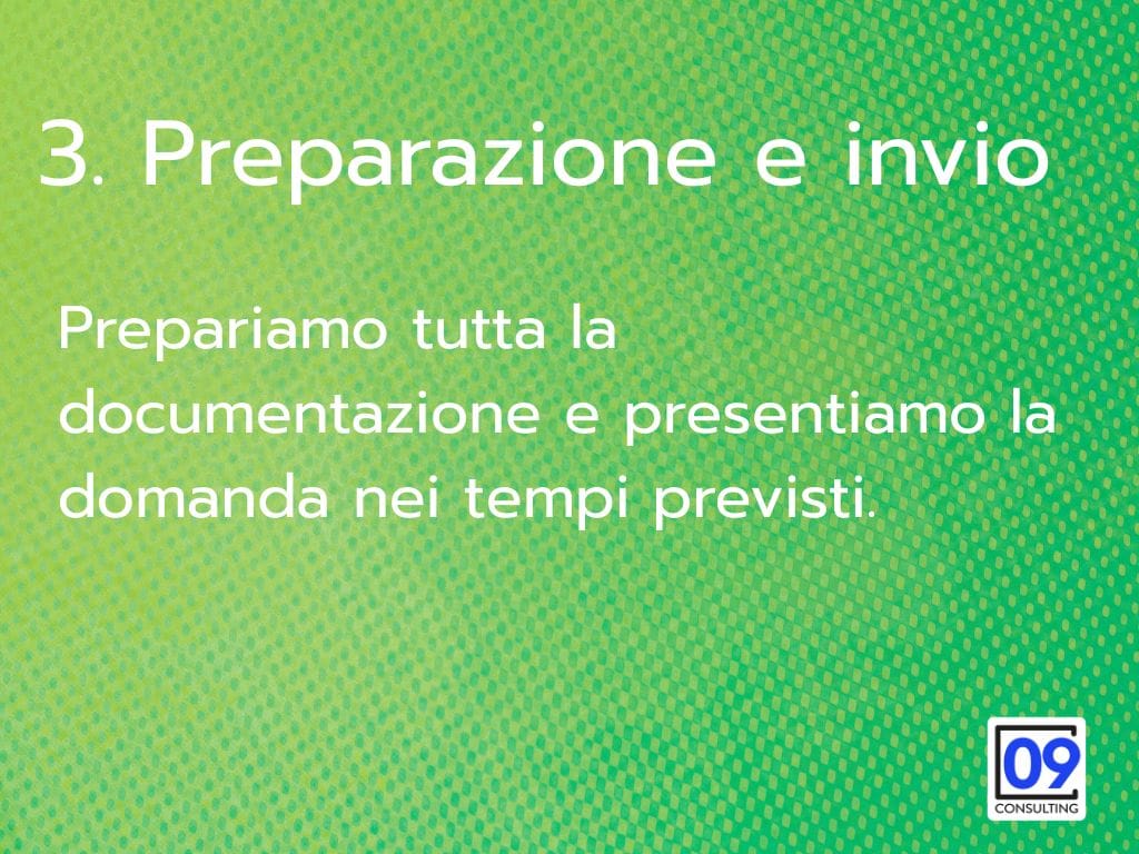 09 Consulting, in collaborazione con numerosi studi specializzati, elimina queste barriere. Monitoriamo costantemente i bandi attivi, verifichiamo la compatibilità con la tua azienda, prepariamo tutta la documentazione e presentiamo la domanda per te. Tu continui a lavorare, noi ci occupiamo di trovare le risorse per far crescere la tua impresa.